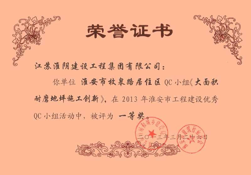 2013年市工程建设优秀QC一等奖 枚皋路居住区-大面积耐磨