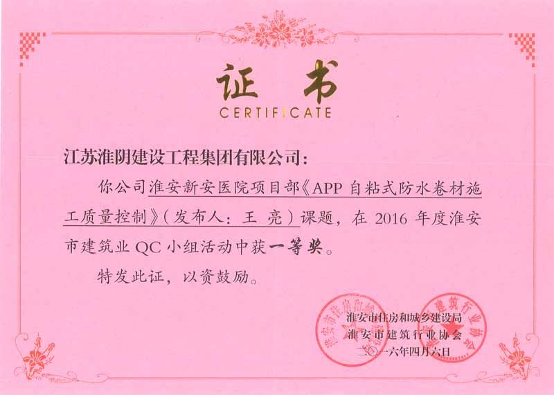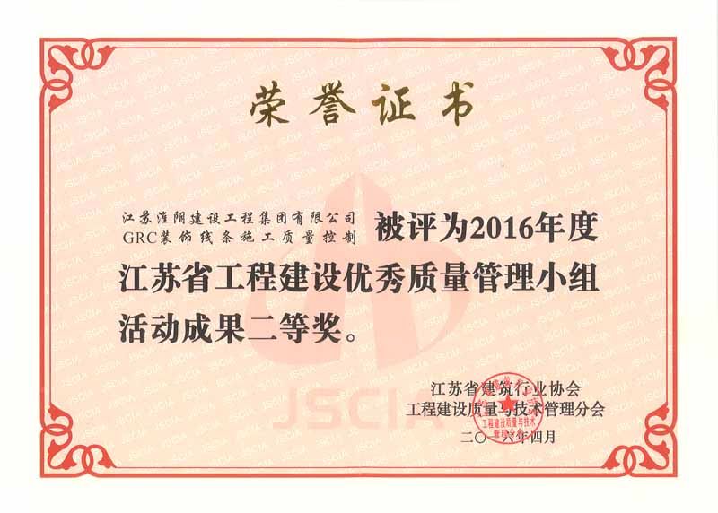 2016年省QC活动成果优秀奖
