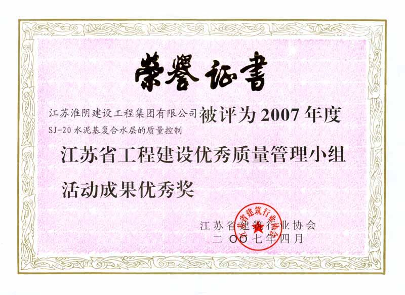 2007年省工程建设优秀质量管理小组活动成果优秀奖-SJ-20水泥基复合水层的质量控制
