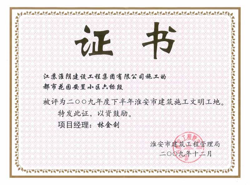 2009年市文明工地都市花园安置小区六标段-林金钊