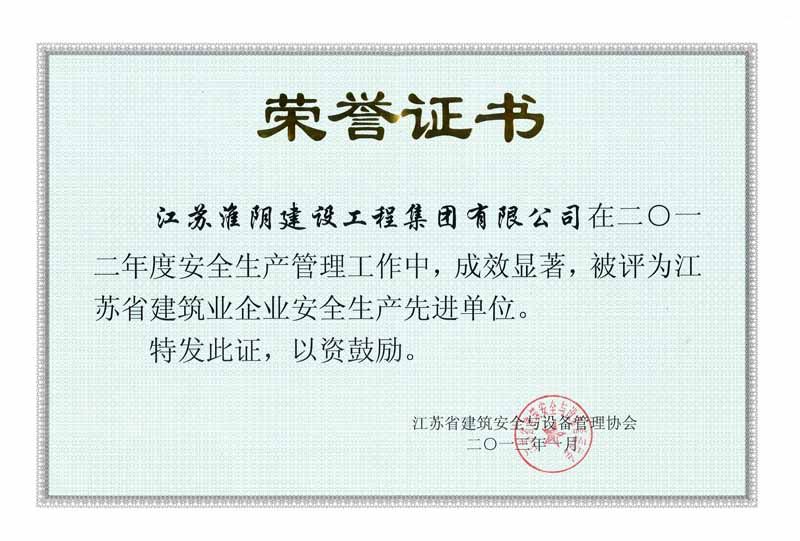 2013年度江苏省建筑业企业安全生产先进单位