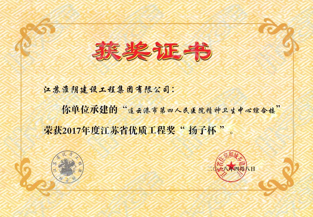 2017年度江苏省优质工程奖“扬子杯”-连云港市第四人民医院精神卫生中心综合楼