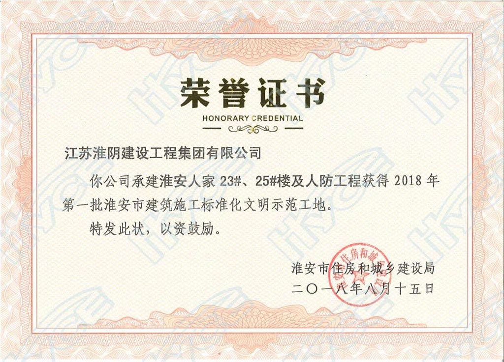淮安市建筑施工标准化文明示范工地-淮安人家23#、25#楼及人防工程