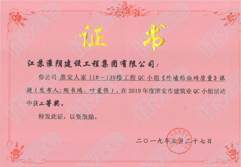淮安市建筑业QC小组二等奖
